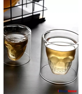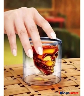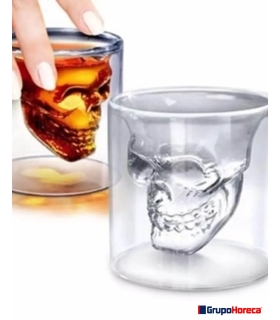 Vaso de vidrio con forma de calavera para presentaciones de cócteles divertidos y diferentes.
