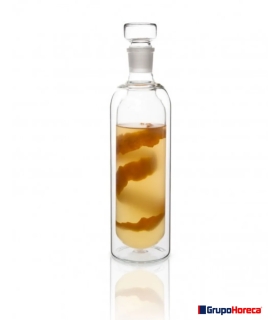Botella de doble pared en cristal de Borosilicato. Resistente al frio del nitrógeno, podrá servir jugos, esencias, licores, zumos...Botella Thermo 750 mlTamaño aprox: Ø 8 cm x alt. 39...
