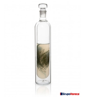 Botella de doble pared en cristal de Borosilicato. Resistente al frio del nitrógeno, podrá servir jugos, esencias, licores, zumos...Botella Thermo 500 mlTamaño aprox: Ø8 cm x h 30...