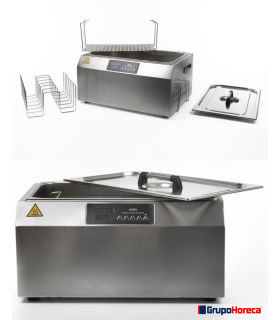 Modelo compacto y robusto con un chasis de policarbonato, resistente al exigente trabajo diario del restaurante. Todos sus componentes están protegidos e integrados en su propio chasis impidiendo que las bolsas entren en contacto directo con la resistencia, evitando así cualquier tipo de incidencia.