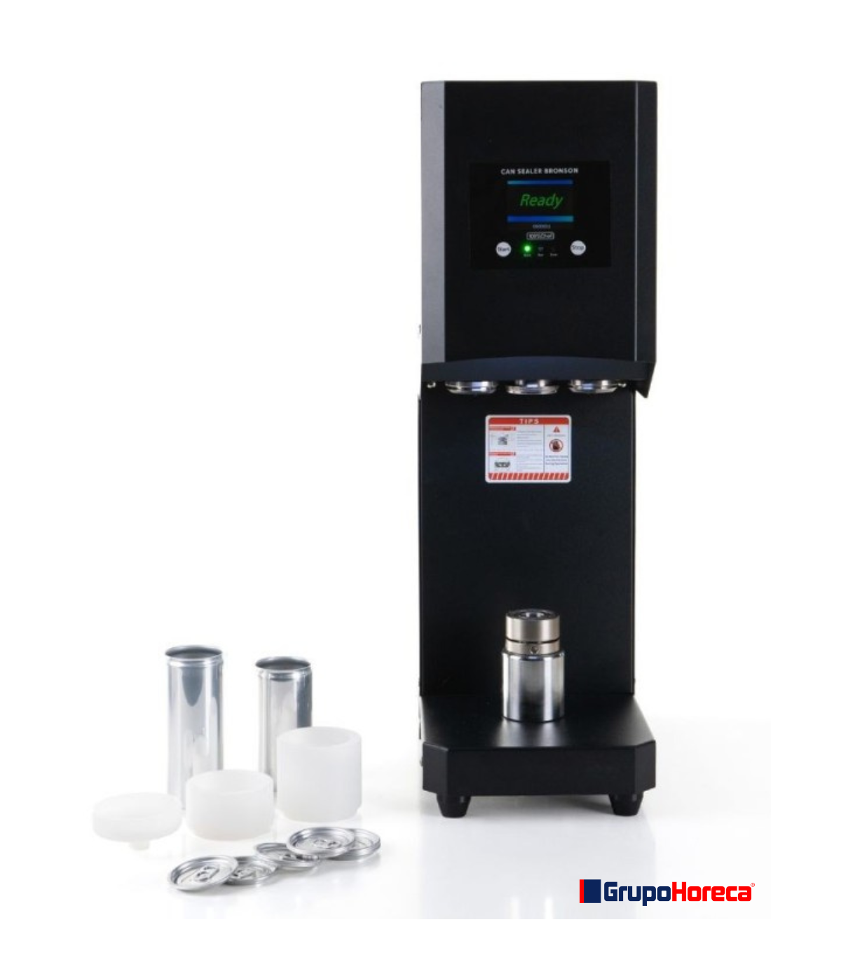 Compatible con latas de aluminio de 200 ml y 250 ml (se venden por separado), esta máquina garantiza un sellado hermético y uniforme, lo que permite ofrecer productos listos para servir con una imagen cuidada y profesional. Además, su diseño minimalista no solo optimiza el espacio de trabajo, sino que también refuerza la experiencia estética en cada presentación.