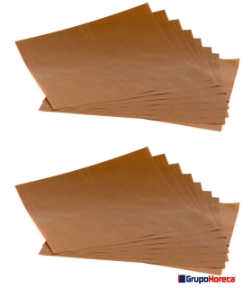 Gruesa y resistente lámina teflonada de 150 µm con un tamaño de 30 x 28 cm y antiadherente por ambas caras.
