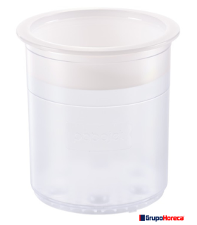 Vaso de Pacotizar® sintético, transparente y apilable. Resistente a los golpes, permite ver el interior.