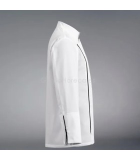 Chaquetilla Cocinero FIRENZE - Disponibles en Color Blanco o NegroModelo con cuello de oficial cuadrado.Se abrocha con automáticos y quedan totalmente escondidos.Bolsillo en manga izquierda.Ranuras laterales.Tejido...